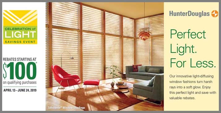- Silhouette® Window Shadings: Buy 2 units to earn a $100 rebate, and earn another $50 rebate for each additional unit you buy. Silhouette diffuses incoming light while providing privacy from the outside. These beauties will transform light in your home.